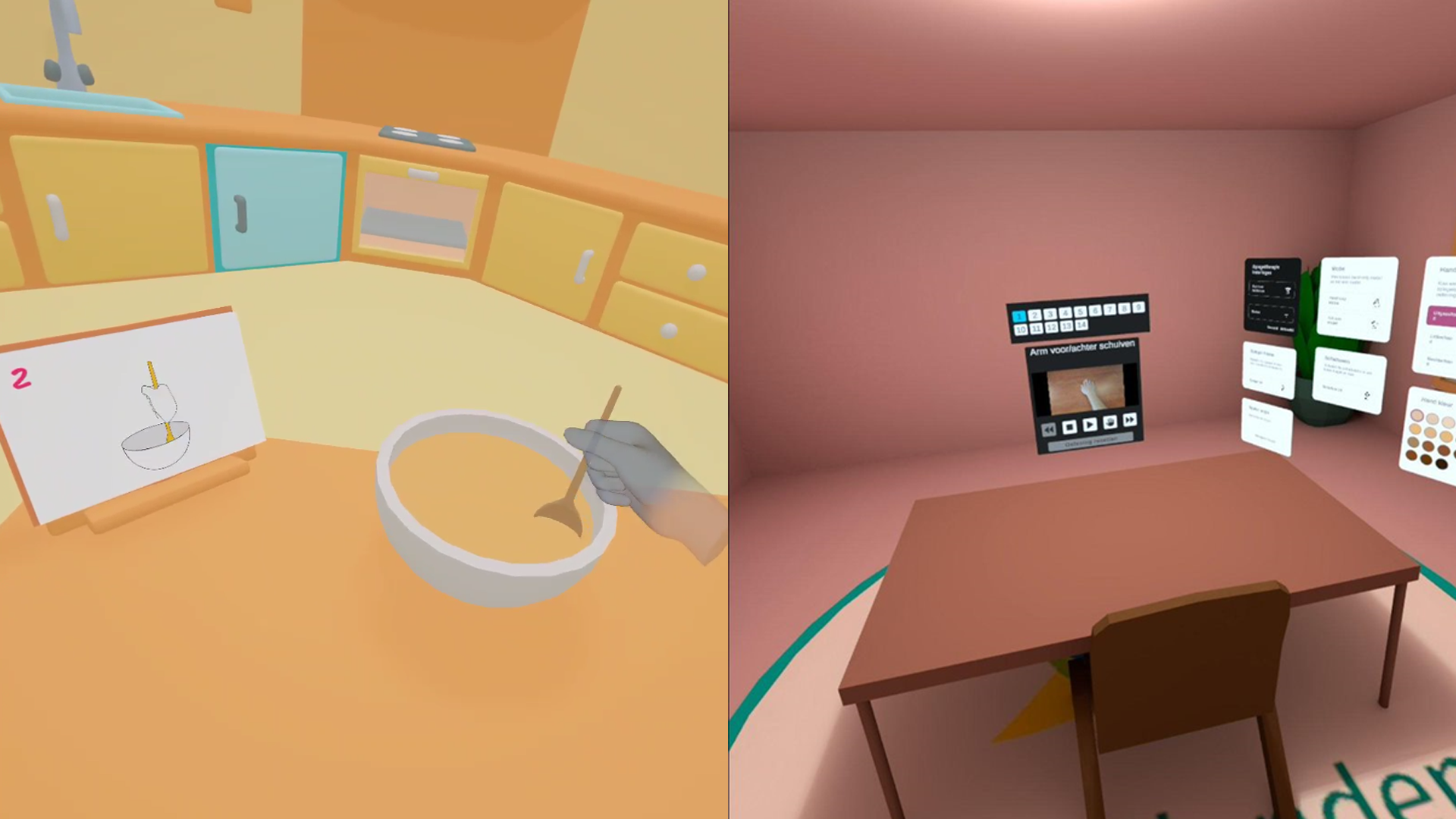 Wij houden ons bezig met het ontwikkelen van virtual reality (VR) revalidatie modules. Hierdoor kunnen gebruikers oefeningen uitvoeren in een unieke omgeving. De omgevingen variëren van dagelijkse situaties tot aan fantasierijke omgevingen.